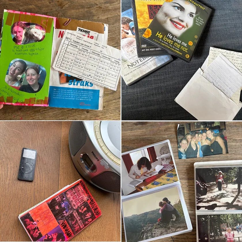 How strange it is to go through the stuff in your attic and literally feel your life going through your hands. There are physical items that remind you of sounds, voices, noises, scents, colors. Like a stream of all your past selves passing by — little movie clips playing one after the other.